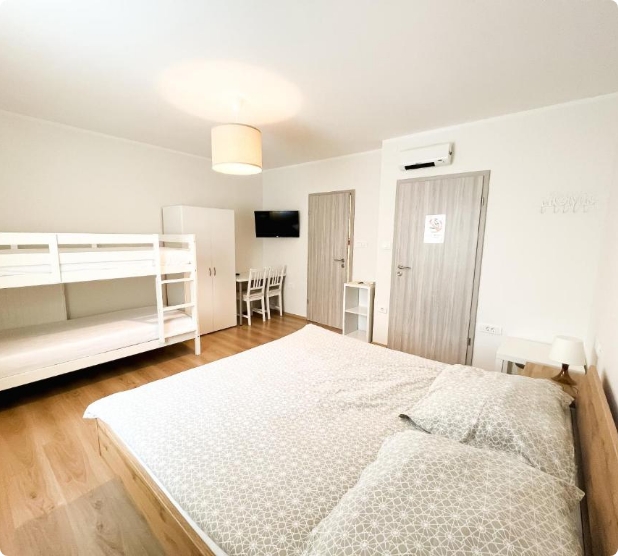 Če potrebujete prenočišče, vas vabimo v naš HOP HOUSE Garni Hotel, ki se nahaja v istem kompleksu. Razpoložljivost in ceno sob lahko preverite tukaj.